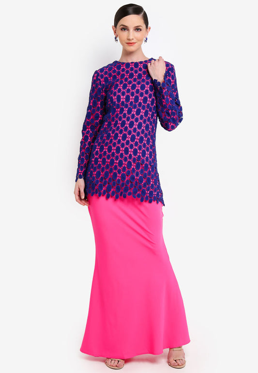 BURANO - MODERN LACE KURUNG - NAVY/FUSCHIA