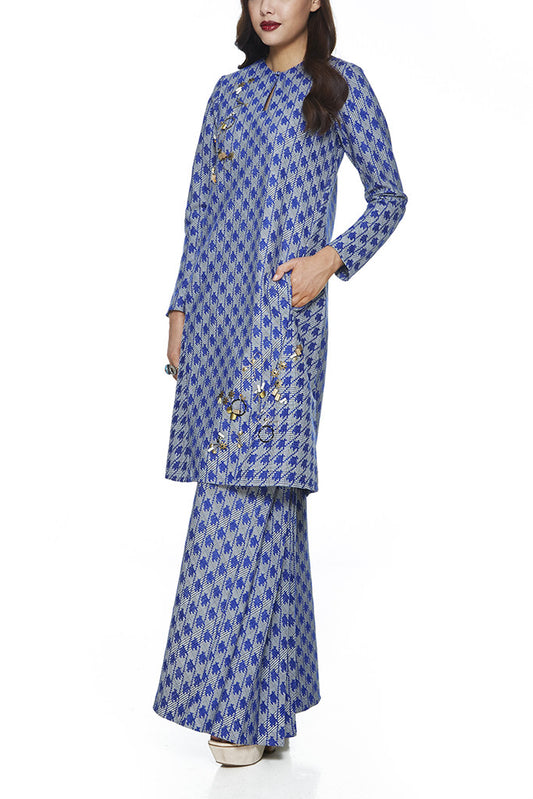 BLUE SAFFRON - A-LINE BAJU KURUNG WITH BEADING DETAILING NEAR THE CHEST AND HEM WITH FRONT POCKETS ON THE PANELS OF THE TOP (BLUE)