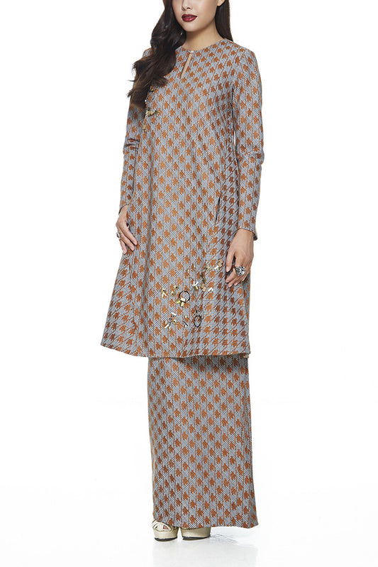 BROWN SAFFRON - A-LINE BAJU KURUNG WITH BEADING DETAILING NEAR THE CHEST AND HEM WITH FRONT POCKETS ON THE PANELS OF THE TOP (BROWN)