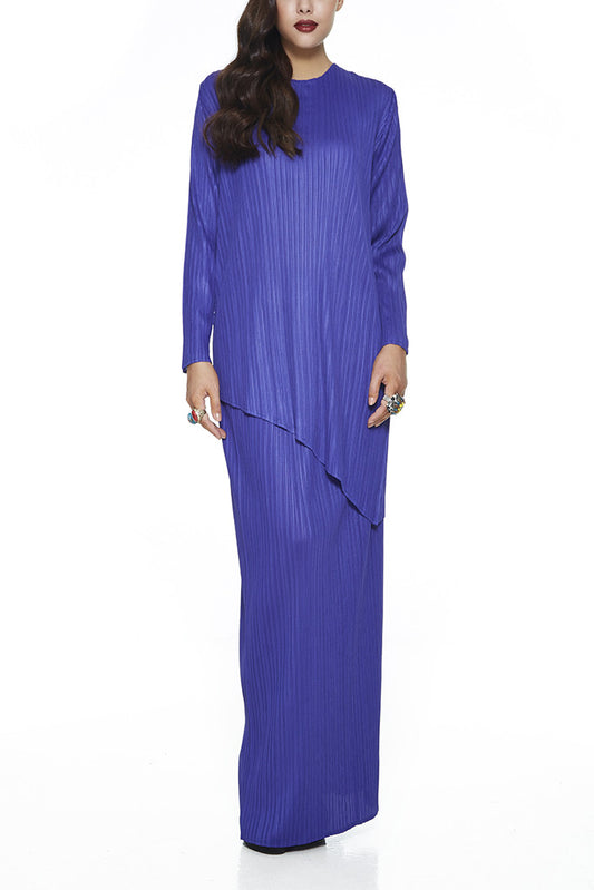 BLUE OREGANO - MODERN PLEATED BAJU KURUNG WITH ASSYMETRICAL HEMMING ON THE TOP AND CRINKLE FREE PLEATS (BLUE)