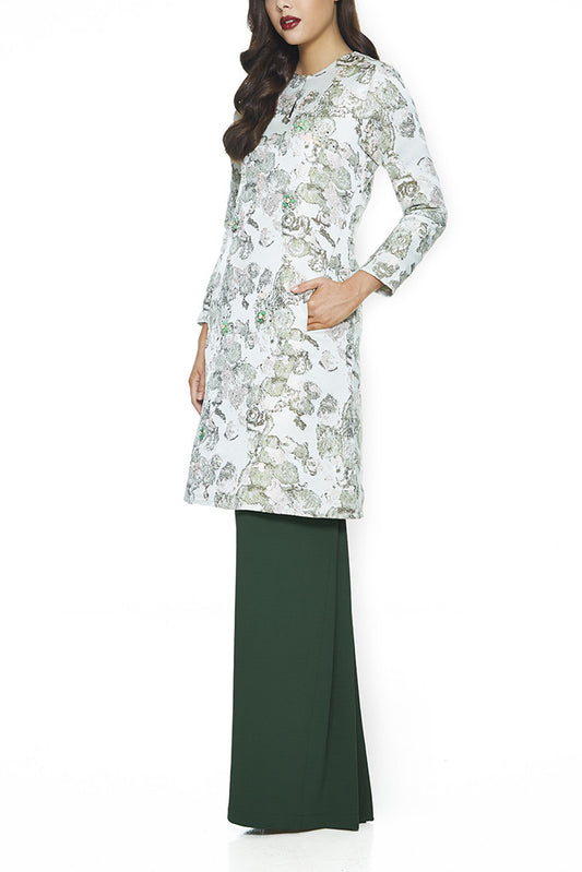 GREEN THYME - JACQUARD A-LINE BAJU KURUNG JOHOR WITH INTRICATE BEADINGS AND FRONT PANEL WITH POCKETS (GREEN)