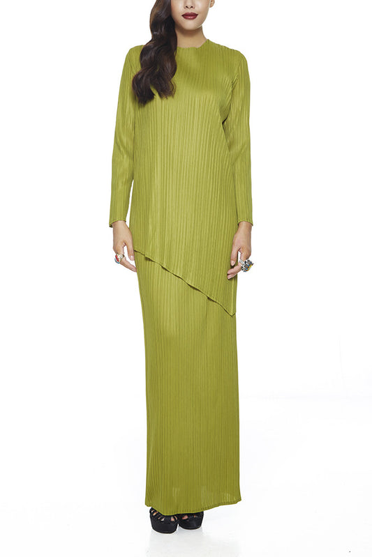 GREEN OREGANO - MODERN PLEATED BAJU KURUNG WITH ASSYMETRICAL HEMMING ON THE TOP AND CRINKLE FREE PLEATS (GREEN)