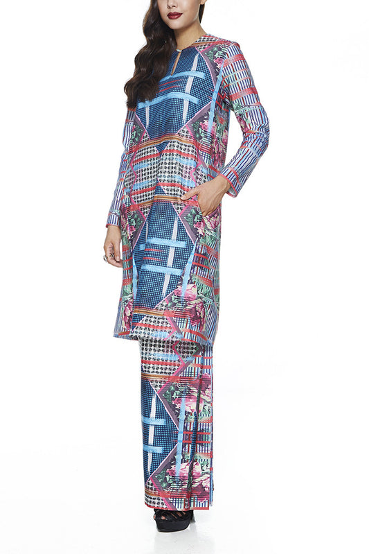 THYME - JACQUARD A-LINE BAJU KURUNG JOHOR WITH INTRICATE BEADINGS AND FRONT PANEL WITH POCKETS (PRINT)