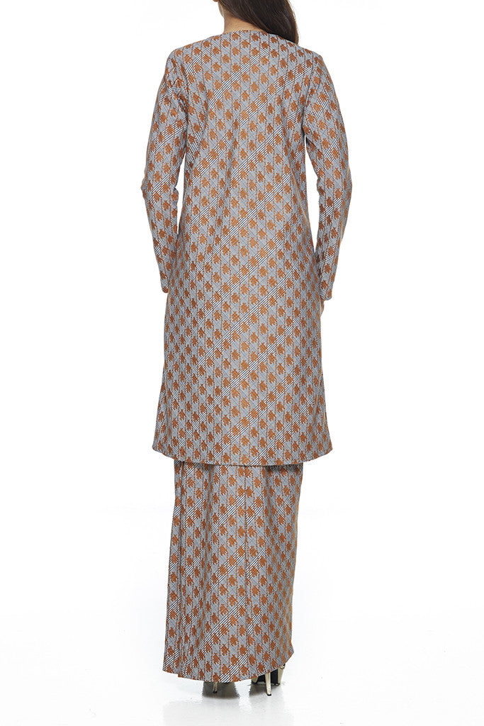 BROWN SAFFRON - A-LINE BAJU KURUNG WITH BEADING DETAILING NEAR THE CHEST AND HEM WITH FRONT POCKETS ON THE PANELS OF THE TOP (BROWN)