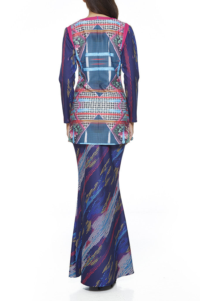 LAVENDER - MODERN KURUNG WITH COLOUR CONTRASTING NECKLINE ON SHOULDER FEATURES 2 EXCLUSIVE PRINTS PANELLINGS ON THE TOP (MULTICOLOUR)